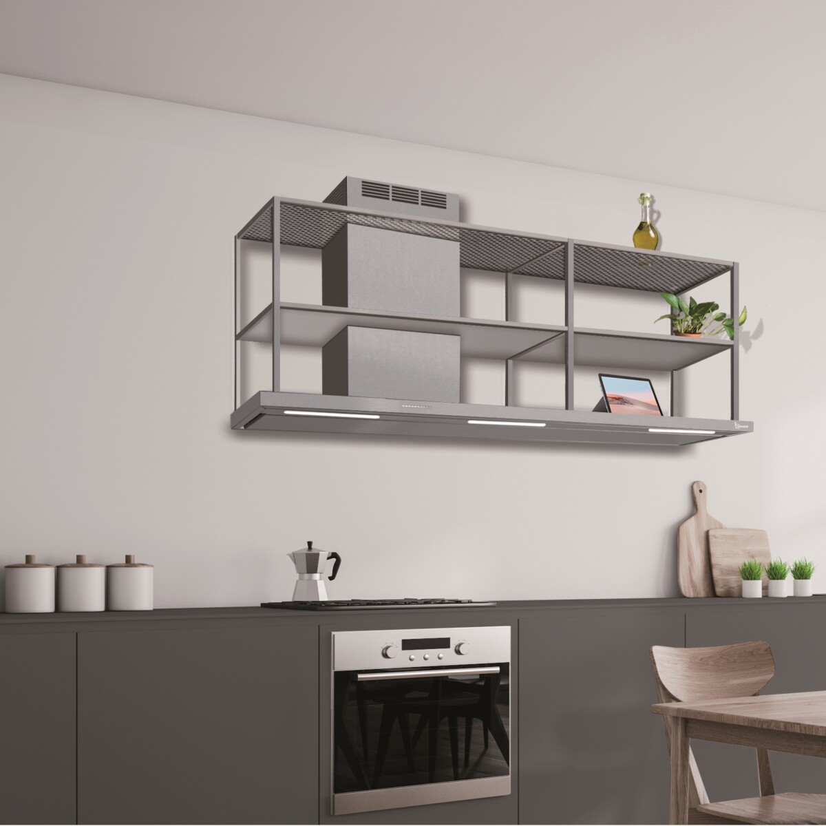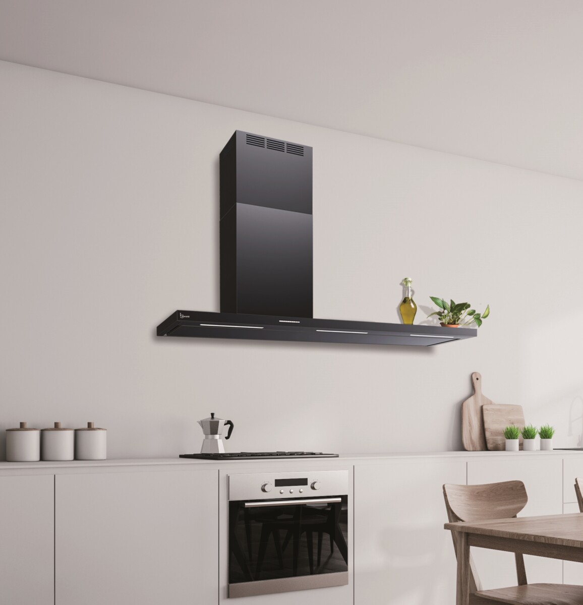 Aspirator Elea Parete je elegantan predstavnik sveta modernog dizajna kuhinjskih napa. Proširuje se lateralno izvan zone kuvanja kako bi formirala čvrstu površinu za odlaganje posuđa i sastojaka. Opremljena motorima snage do 900 m³/h, koji zahvaljujući perimetralnoj ploči osiguravaju maksimalnu efikasnost usisavanja duž cele donje površine. LED svetla velike snage i elektronska kontrola čine proizvod koji ukrašava, osvetljava i izvlači paru i mirise na visokom nivou.